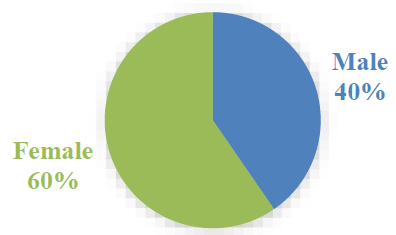 Percentage distribution of gender of respondents.