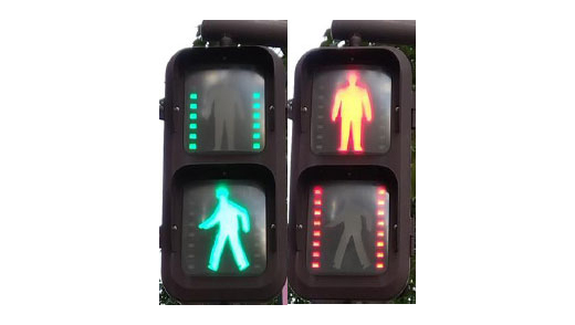 Several studies have analyzed the provision of countdown information on traffic lights and their effects on vehicle startup and signal stop passage. Huey et al. [2] compared drivers’ behavior at two intersections in Berkeley, USA, with and without a countdown pedestrian traffic light. According to Berkeley's guidelines then, the countdown displays the remaining time on a display that is the same size as a pedestrian lamp. The authors found that drivers at the pedestrian countdown intersections were less likely to enter the intersection at the end of the amber phase than those at traditional pedestrian signal intersections. Oikawa et al. [3] described different forms in which countdown information is provided in pedestrian traffic lights in Japan and Taiwan. As shown in Fig. (1), the countdown pedestrian traffic light in Japan displays the remaining time for the red and green signals with dots that disappear about every 5 s along with the display of the human pattern. On the other hand, in Taiwan, along with counting numerically in an upper window, when the remaining time for the green signal is short, a human pattern appears in a lower window. Both traffic lights pass pedestrians and avoid danger by notifying them of the remaining time for the green signal at signalized intersections. However, the authors did not consider the effect of installing these signals in reducing accidents. Pulugurtha et al. [4] evaluated the effect of installing pedestrian countdown signals over a 5-month period at 106 signalized intersections in Charlotte, North Carolina, USA. Sixty-eight percent of the signalized intersections showed a decrease in the total number of crashes. Thus, the authors concluded that pedestrian countdown traffic lights are effective for both pedestrians and drivers to safely cross intersections.